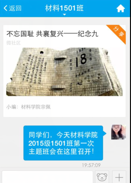 9月18日,材料学院新生班级建设工作基本完成,所有班级新成立的班团委在辅导员的带领下,在易班班群上展开了918 事件的在线讨论。所有同学都积极的参与进来,踊跃的发表自己对这一历史事件的看法。有的同学说:“今天的和平美好都是革命前辈的鲜血换来的,我们应不忘国耻……”,有的同学说:“我们永远不会忘记今天这个沉痛的日子,对于历史,忘却就算背叛……”大家纷纷表示要勿忘国耻,吸取教训,为祖国今后的发展尽力!