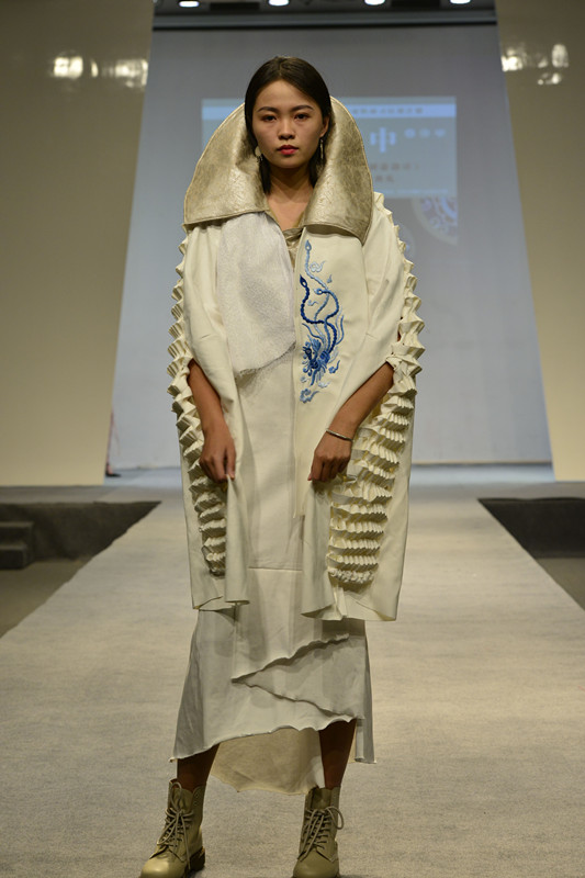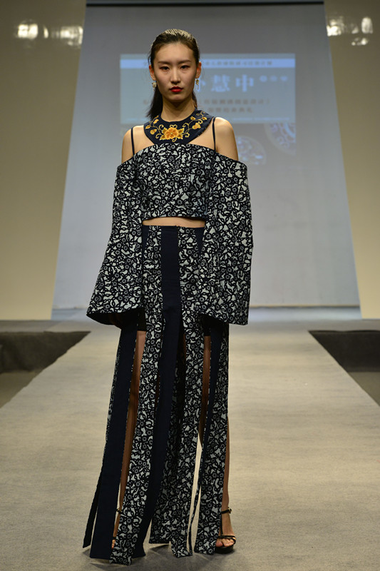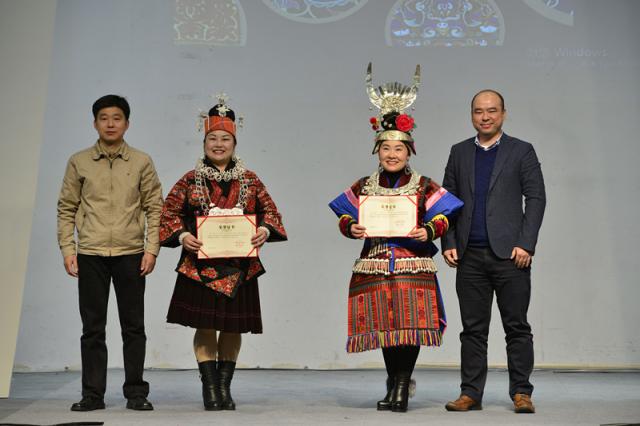 随着民族服饰展示接近尾声,能歌善舞的学员们唱起了贵州当地的民族歌曲,极具特色的歌声向在场所有人传递出贵州浓浓的民族文化和民族自信。活动上展示的21件结对创作作品由我校服装设计专业学生和非遗班学员共同完成,专业学生主要负责服装整体设计制作,各位学员参与其中并负责图案刺绣的设计创作。在此过程中将传统民族图案应用于具有时尚感的现代服饰中,或在传统图案基础上进行现代化设计,创作出民族与时尚碰撞结合的服饰。