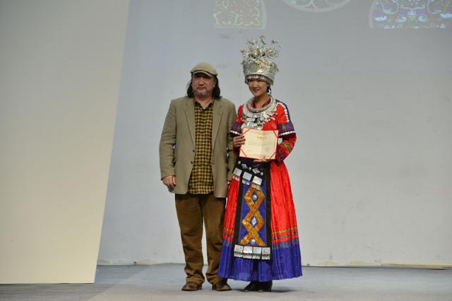 活动中,嘉宾和教师代表为本期非遗学员颁发结业证书并合影留念。冯信群为张玉晶同学颁发“积极分子”的荣誉证书,葛永铭、李俊为本期研修班优秀学员张婕和王冬梅颁发荣誉证书。全体参训教师、非遗学员、模特、结对学员及嘉宾现场合影留念。