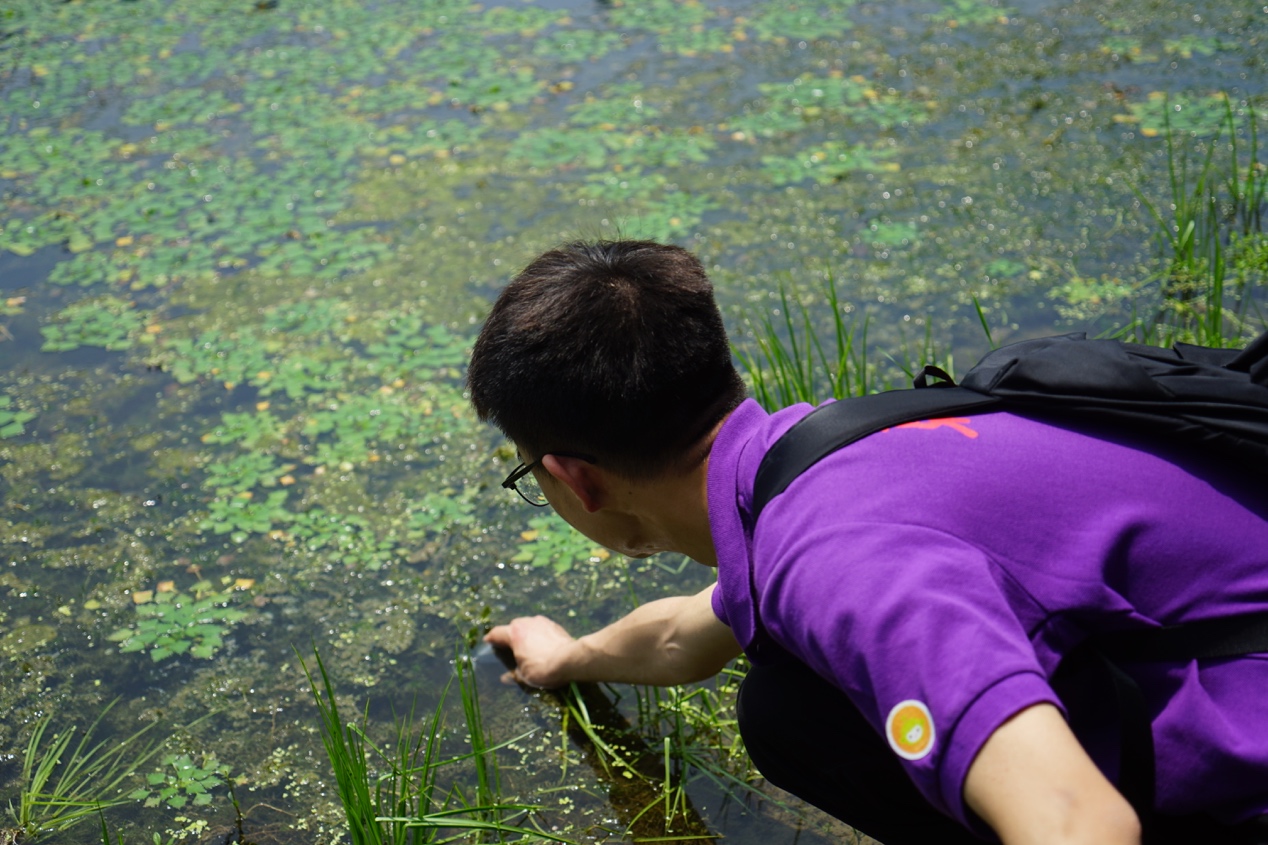 图为环境学院赴无锡实践团在太湖流域人工湿地采集水样