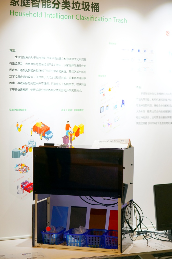 机械学院杨钟亮副教授带领学生团队紧跟垃圾分类魔都新时尚,创新设计了家庭智能分类垃圾桶,这个新装置让大家忍不住伸手一试;王思萍老师指导工业设计15级本科生杨昕粲带来的毕业设计作品“环境保护策略类桌面游戏——新星地球”,不一会就引来不少玩家,真可谓寓教于乐的高手。