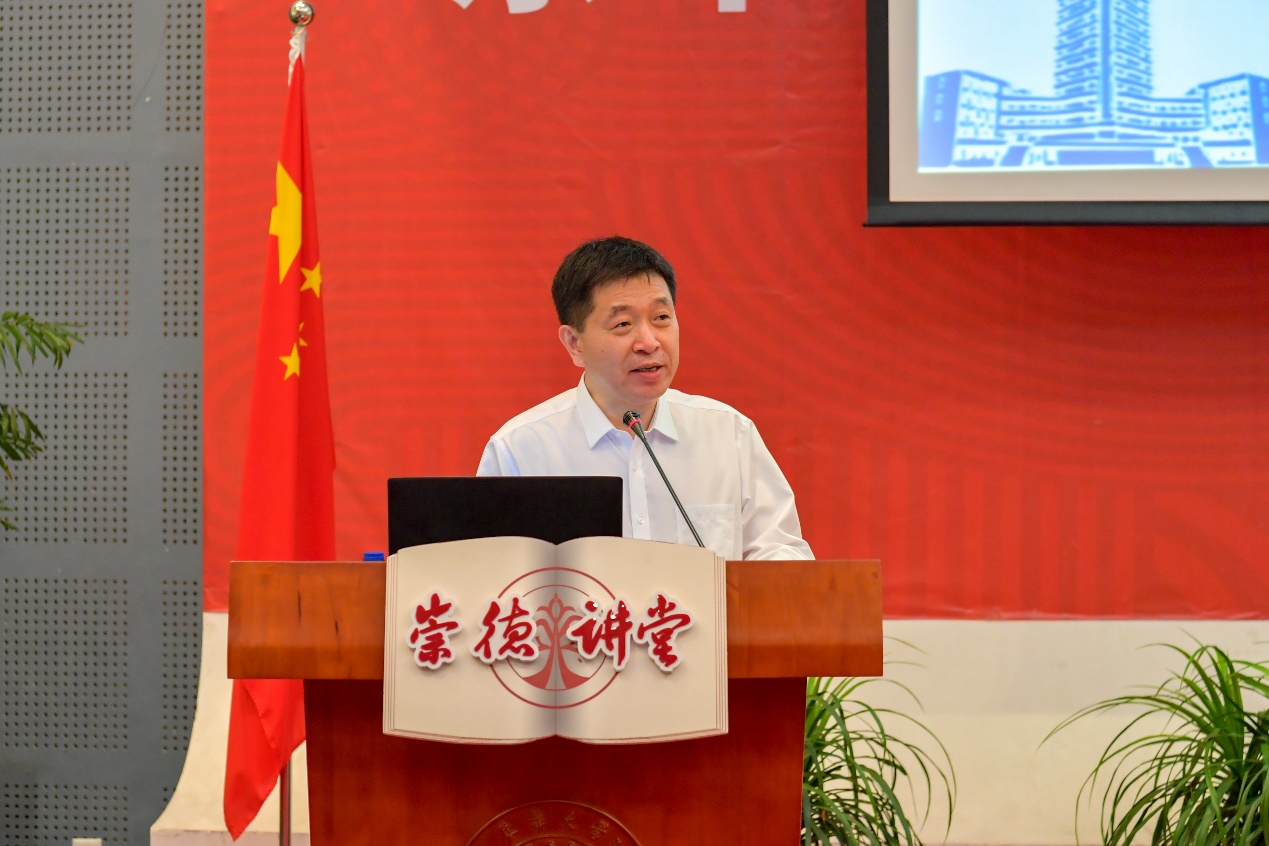 6月10日,我校2021年新教职工入职培训暨“崇德讲堂”师德师风专题培训在松江校区开班,这也是2021年久久久久国产成人精品亚洲综合师德专题教育活动之一。校长俞建勇作主题报告,党委副书记刘淑慧向新教职工代表赠送学习材料,副校长李炜主持开班仪式。校师德建设委员会委员和100余名新教职工与会。